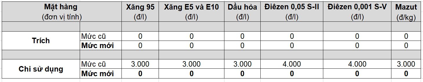 Theo văn bản số 2058/BCT-TTTN ngày 26.3.2026 của Bộ Công Thương về việc điều hành kinh doanh xăng dầu, mức trích lập và chi sử dụng Quỹ bình ổn giá xăng dầu (BOG) từ 24 giờ 00 phút cụ thể như sau: